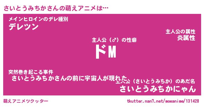 | 男性向けラノベタイトル風あだ名 | 『さいとうみちかの憂鬱』 |