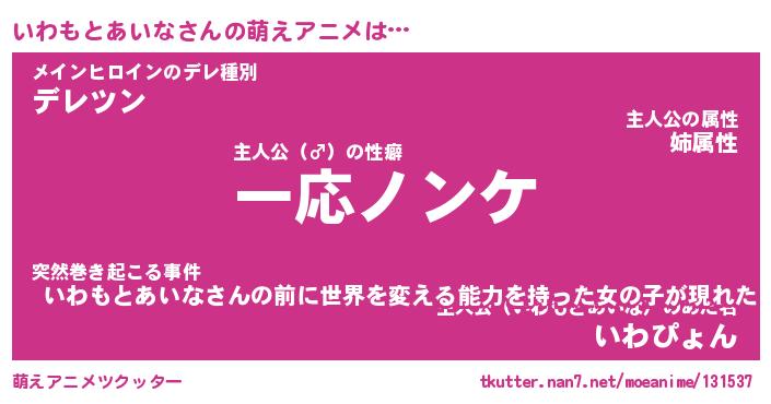 | 女子向けラノベタイトル風あだ名 | 『誰かこのいわもとあいなを説明してください! ~契約から始まるウェディング~』 |