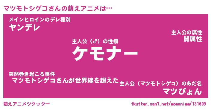 | 男性向けラノベタイトル風あだ名 | 『マツモトシゲコアートオンライン』 |