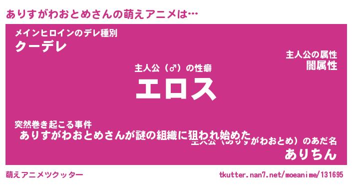 | 肩書あだ名 | 『ありすがわおとめ店長』 |