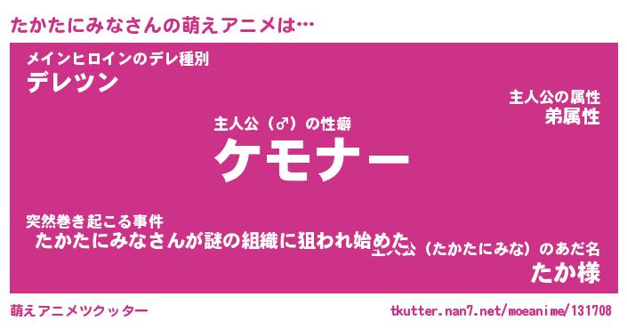| 肩書あだ名 | 『たかたにみな御曹司』 |