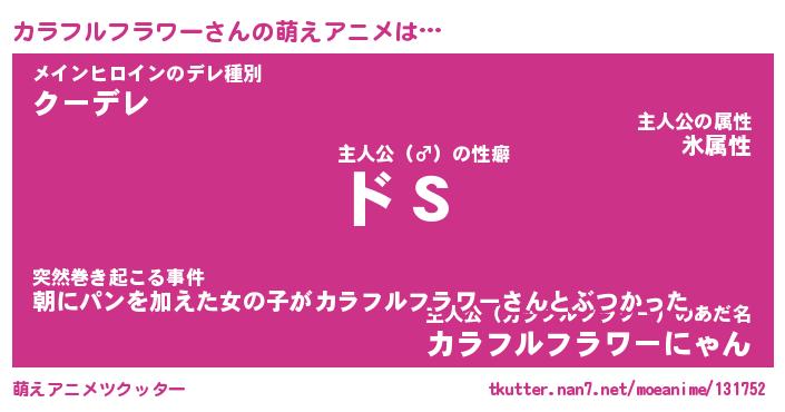 | 女子向けラノベタイトル風あだ名 | 『(仮)カラフルフラワーのやんごとなき事情』 |