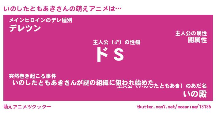 | 男性向けラノベタイトル風あだ名 | 『いのしたともあきの憂鬱』 |