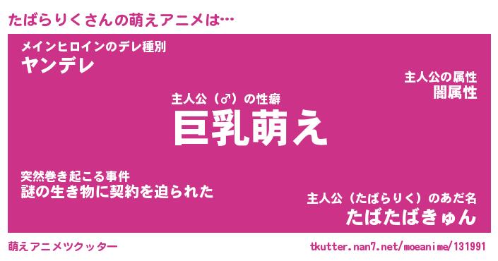 | 男性向けラノベタイトル風あだ名 | 『たばらりくの憂鬱』 |