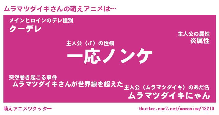 | 男性向けラノベタイトル風あだ名 | 『ムラマツダイキアートオンライン』 |