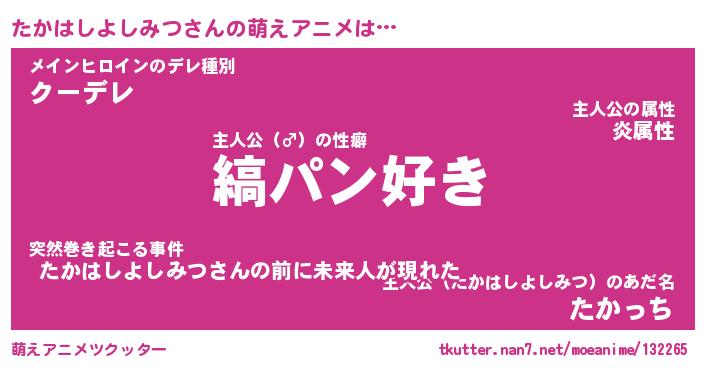 | 女子向けラノベタイトル風あだ名 | 『(仮)たかはしよしみつのやんごとなき事情』 |