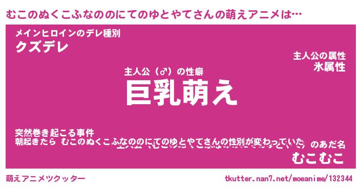| 料理風あだ名 | 『節約★むこのぬくこふなののにてのゆとやてと油揚げの玉子丼』 |