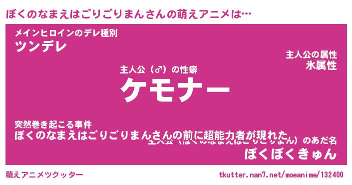 | 女子向けラノベタイトル風あだ名 | 『誰かこのぼくのなまえはごりごりまんを説明してください! ~契約から始まるウェディング~』 |