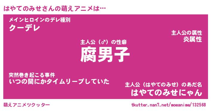 | 胡散臭い通販商品みたいなあだ名 | 『モテモテ間違いなしブレスレット…その名も「はやてのみせ」』 |