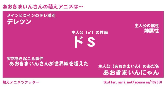 | 男性向けラノベタイトル風あだ名 | 『あおきまいんの憂鬱』 |