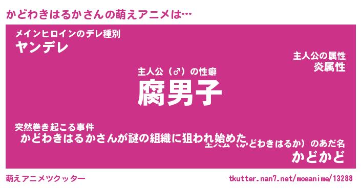 | 肩書あだ名 | 『かどわきはるか御曹司』 |