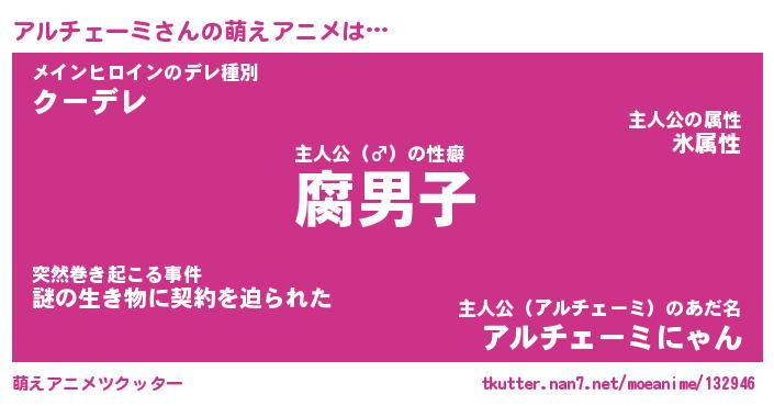 | 男性向けラノベタイトル風あだ名 | 『アルチェーミアートオンライン』 |