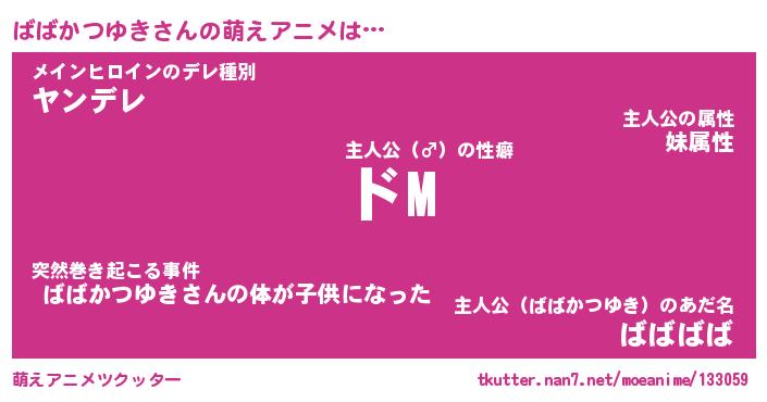 | 男性向けラノベタイトル風あだ名 | 『ばばかつゆきの憂鬱』 |