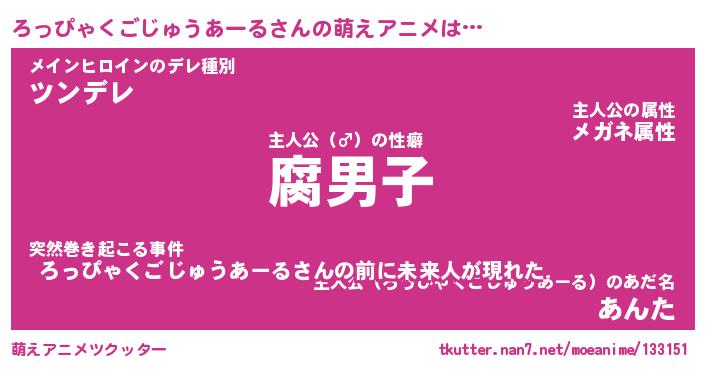 | 女子向けラノベタイトル風あだ名 | 『ろっぴゃくごじゅうあーる姫と円卓の騎士』 |