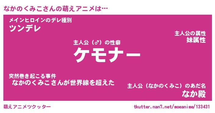 | 男性向けラノベタイトル風あだ名 | 『ナカノクミコアートオンライン』 |
