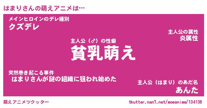 | 男性向けラノベタイトル風あだ名 | 『はまりの憂鬱』 |