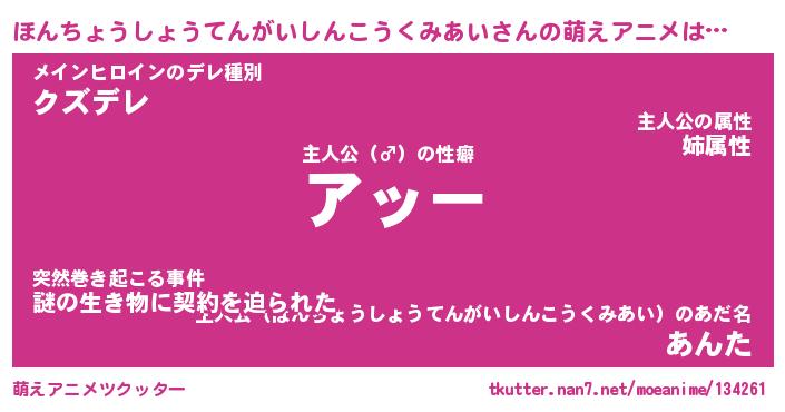 | 番長 | ほんちょうしょうてんがいしんこうくみあい、またの名を・・・!『実はそうでもないほんちょうしょうてんがいしんこうくみあいちゃん』 |