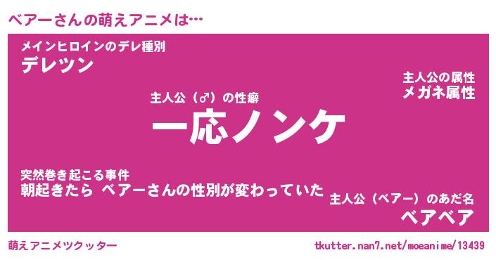 | 男性向けラノベタイトル風あだ名 | 『ベアーアートオンライン』 |