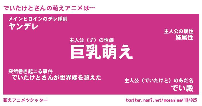 | 男性向けラノベタイトル風あだ名 | 『でいたけとの憂鬱』 |