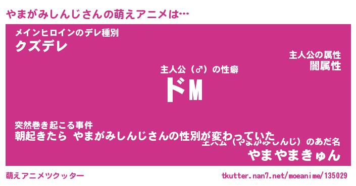 | 男性向けラノベタイトル風あだ名 | 『やまがみしんじの憂鬱』 |