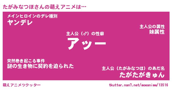 | 肩書あだ名 | 『たがみなつほ社長』『たがみなつほ班長』 |