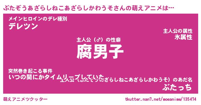 | 2回繰り返すあだ名 | 『ぶたぶた』『ぶぶたた』『いらいら』 |