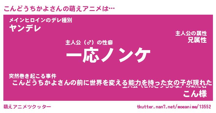 | ツイッター | こんどうちかよさんのツイッターID『namakemono_idle』 |
