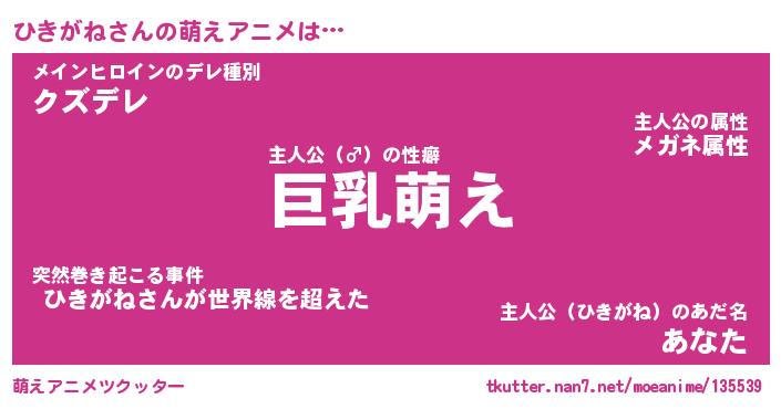 | ファンタジー風あだ名 | 『ヒキフェル』『エターナルヒキガネー』 |