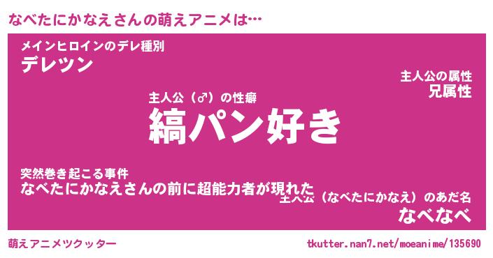 | 女子向けラノベタイトル風あだ名 | 『(仮)なべたにかなえのやんごとなき事情』 |
