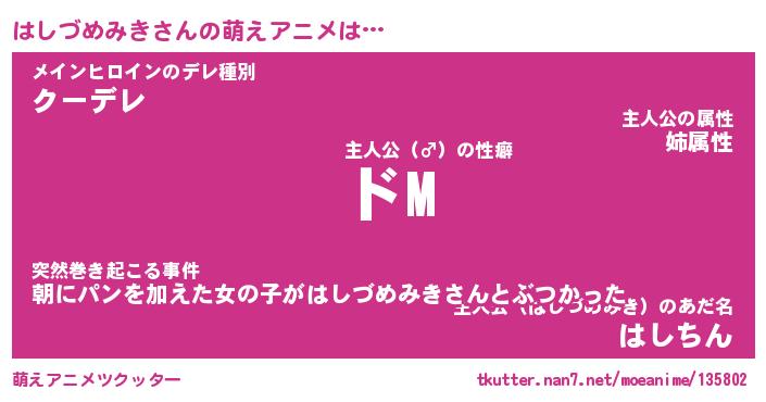 | 男性向けラノベタイトル風あだ名 | 『はしづめみきの憂鬱』 |
