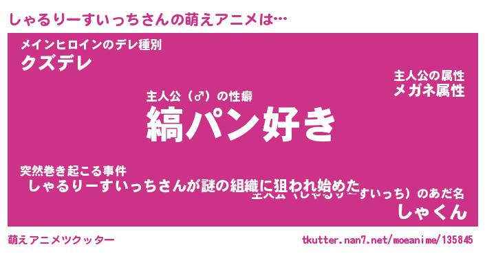 | 男性向けラノベタイトル風あだ名 | 『しゃるりーすいっちの憂鬱』 |
