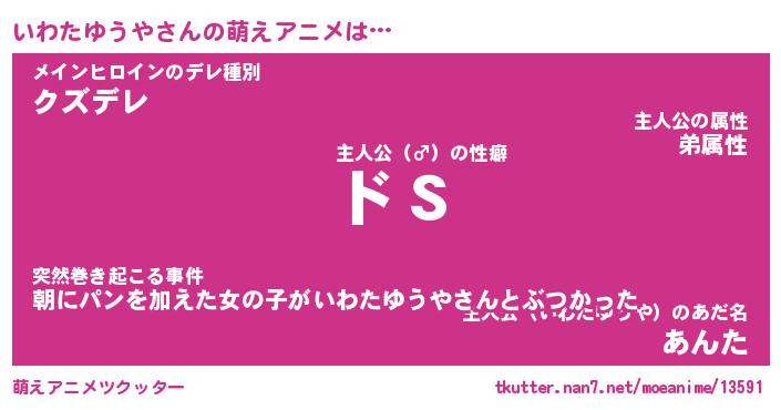 | 女子向けラノベタイトル風あだ名 | 『(仮)いわたゆうやのやんごとなき事情』 |