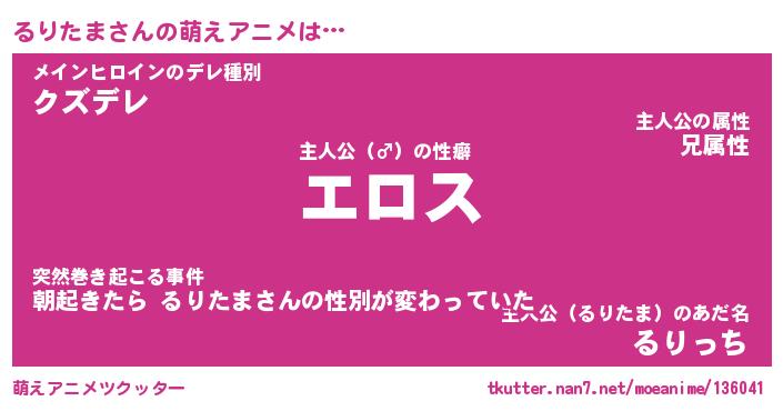 | 男性向けラノベタイトル風あだ名 | 『ルリタマアートオンライン』 |