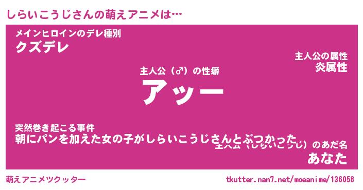 | 男性向けラノベタイトル風あだ名 | 『シライコウジアートオンライン』 |