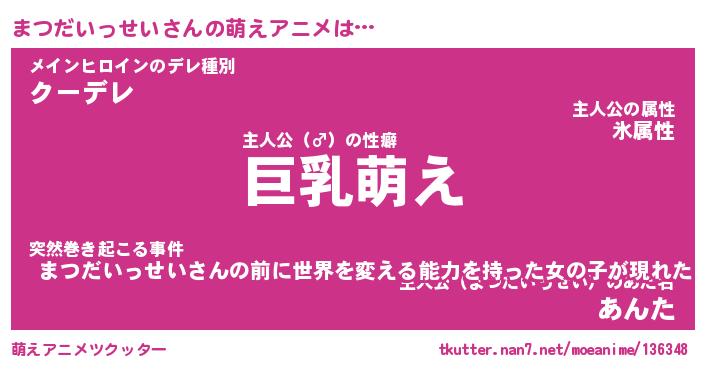| 男性向けラノベタイトル風あだ名 | 『まつだいっせいの憂鬱』 |