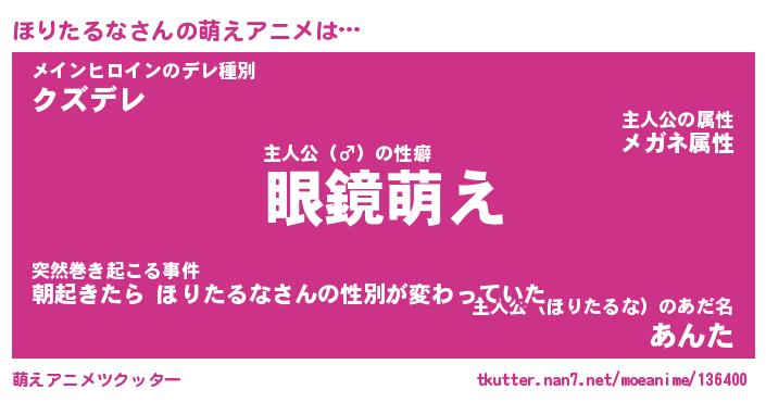 | 男性向けラノベタイトル風あだ名 | 『ほりたるなの憂鬱』 |