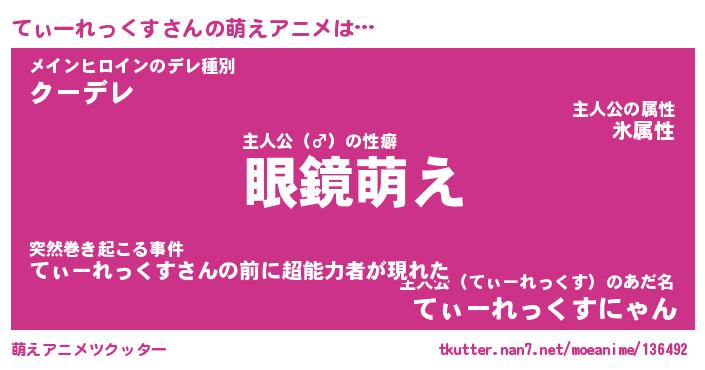 | 男性向けラノベタイトル風あだ名 | 『てぃーれっくすの憂鬱』 |