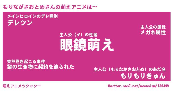 | 男性向けラノベタイトル風あだ名 | 『もりながさおとめの憂鬱』 |