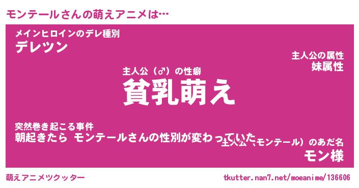 | 女子向けラノベタイトル風あだ名 | 『(仮)モンテールのやんごとなき事情』 |