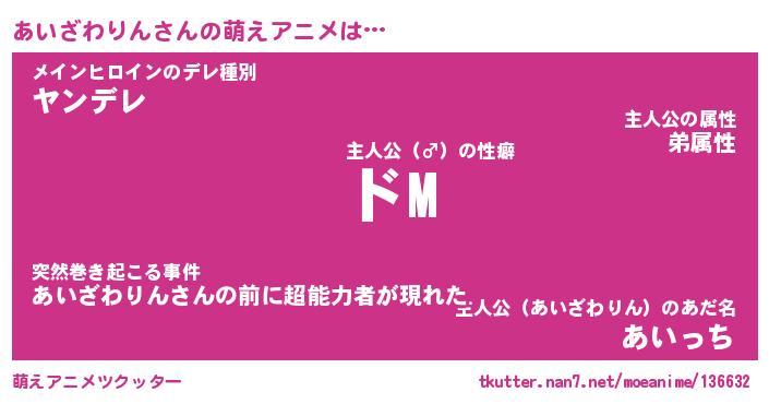 | 男性向けラノベタイトル風あだ名 | 『あいざわりんの憂鬱』 |