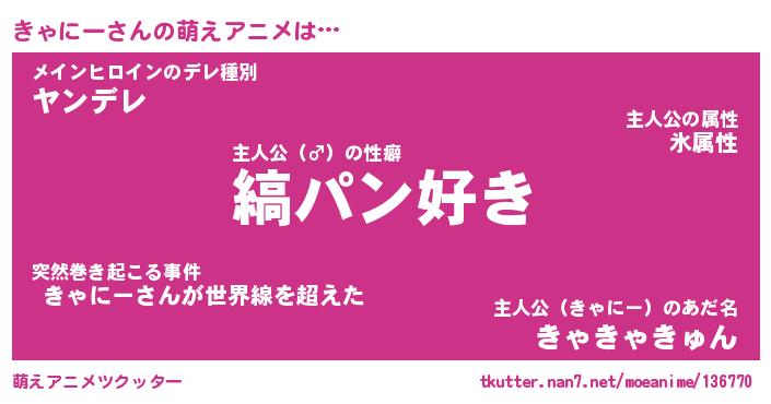 | 男性向けラノベタイトル風あだ名 | 『きゃにーの憂鬱』 |