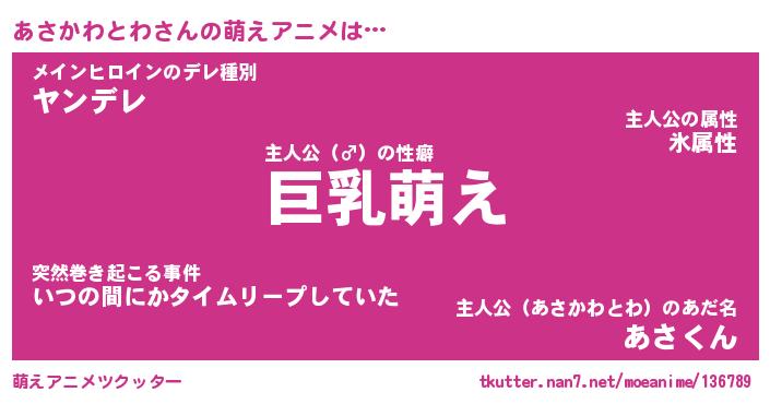 | 男性向けラノベタイトル風あだ名 | 『あさかわとわの憂鬱』 |