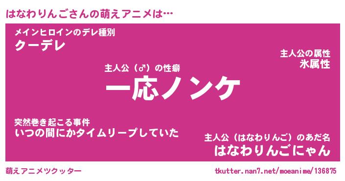 | 男性向けラノベタイトル風あだ名 | 『ハナワリンゴアートオンライン』 |