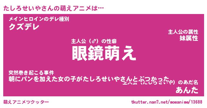 | 男性向けラノベタイトル風あだ名 | 『たしろせいやの憂鬱』 |