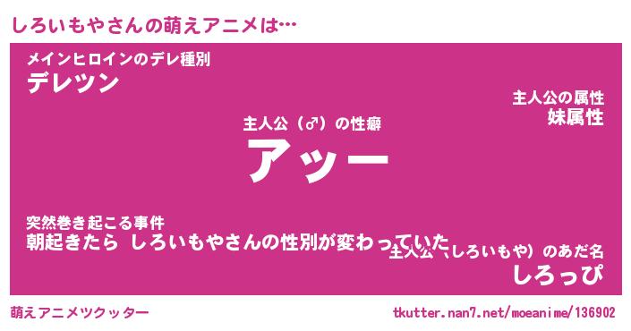 | 男性向けラノベタイトル風あだ名 | 『シロイモヤアートオンライン』 |