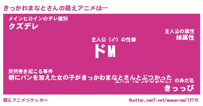 | 女子向けラノベタイトル風あだ名 | 『(仮)きっかわまなとのやんごとなき事情』 |