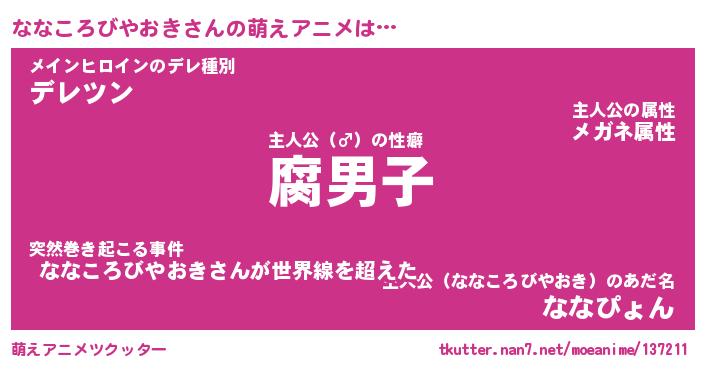 | ヘコむあだ名 | 『ななにゅー』『なまこ酢』『ななを』 |
