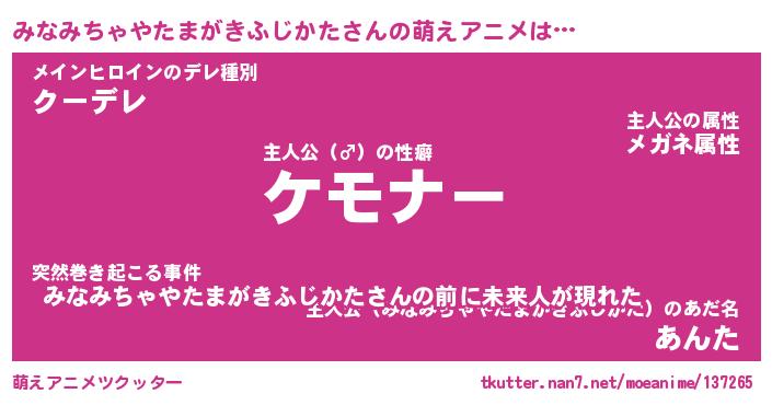 | 女子向けラノベタイトル風あだ名 | 『誰かこのみなみちゃやたまがきふじかたを説明してください! ~契約から始まるウェディング~』 |