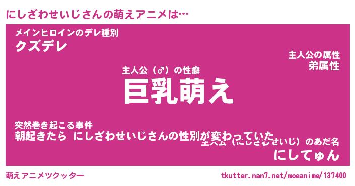 | 恥ずかしいあだ名 | 『プリティーにしざわせいじ』『にしちん』 |