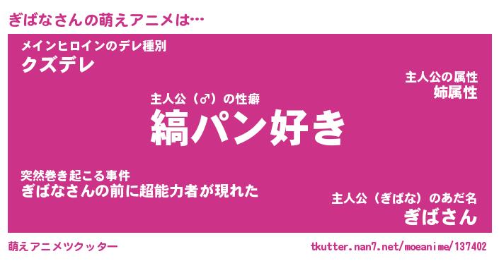 | 男性向けラノベタイトル風あだ名 | 『ぎばなの憂鬱』 |